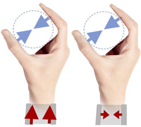 Our aim is to provide effective interaction with virtual objects, despite the lack of co-location of virtual and real-world contacts, while taking advantage of relatively large skin area and ease of mounting on the forearm. We performed two human participant studies to determine the effects of haptic feedback in the normal and shear directions during virtual manipulation using haptic devices worn near the wrist. In the first study, participants performed significantly better while discriminating stiffness values of virtual objects when the feedback consisted of normal displacements compared to shear displacements. Participants also commented that they could detect normal cues much easier than shear, which motivated us to perform a second study to find the point of subjective equality (PSE) between normal and shear stimuli. Our results show that shear stimuli require a larger actuator displacement but less force than normal stimuli to achieve perceptual equality for our haptic bracelets. We found that normal and shear stimuli cannot be equalized through skin displacement nor the interaction forces across all users. Rather, a calibration method is needed to find the point of equality for each user where normal and shear stimuli create the same intensity on the user’s skin.